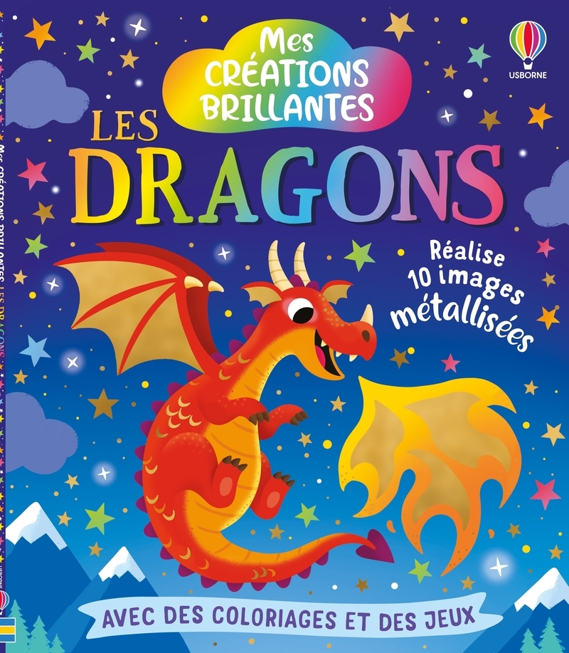 Un livre d'activités avec du papier métallisé sur le thème des dragons. Ce livre d'activités contient 10 scènes de dragons à décorer à l'aide des feuilles métallisées fournies. Il suffit de décoller une forme pour révéler une zone autocollante, puis d'y appliquer une feuille métallisée : en retirant la feuille, un superbe effet scintillant apparaît comme par magie ! Avec 30 feuilles métallisées de couleurs assorties , les possibilités créatives sont infinies. Les enfants trouveront également des pages de dessin, de coloriage et de jeux sur le thème des dragons pour s'amuser pendant des heures. dès 5 ans