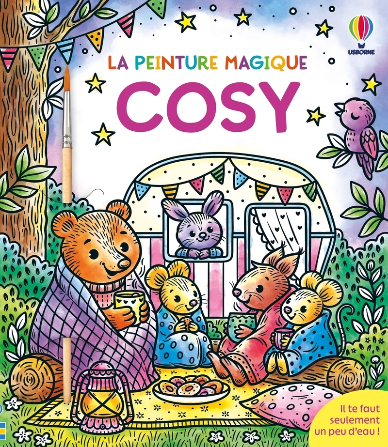 Un livre de peinture magique pour donner vie à des scènes chaleureuses peuplées d'adorables animaux... comme par magie ! Retrouve un groupe d'adorables petits animaux qui observent les étoiles un soir d'été, lisent une histoire en famille, décorent leur maison pour l'automne, ou encore organisent un goûter dans une cabane : avec le pinceau fourni, passe un peu d'eau sur les illustrations en noir et blanc pour faire apparaître les couleurs comme par magie. Une activité calme et non salissante ! - 16 illustrations en noir et blanc à colorier - Il suffit d'un peu d'eau pour révéler les couleurs - Un rabat étanche permet de peindre chaque page tout en protégeant celles qui suivent - Les pages détachables permettent d'afficher ses œuvres un peu partout dans la maison - De toutes nouvelles éditions 100% recyclables et un pinceau de qualité avec un manche en bambou - Une activité calme, non salissante et qui occupe les enfants pendant des heures - Découvrez les autres titres de la collection La peinture magique ainsi que la collection Ma première peinture magique pour les enfants dès 3 ans dès 5 ans
