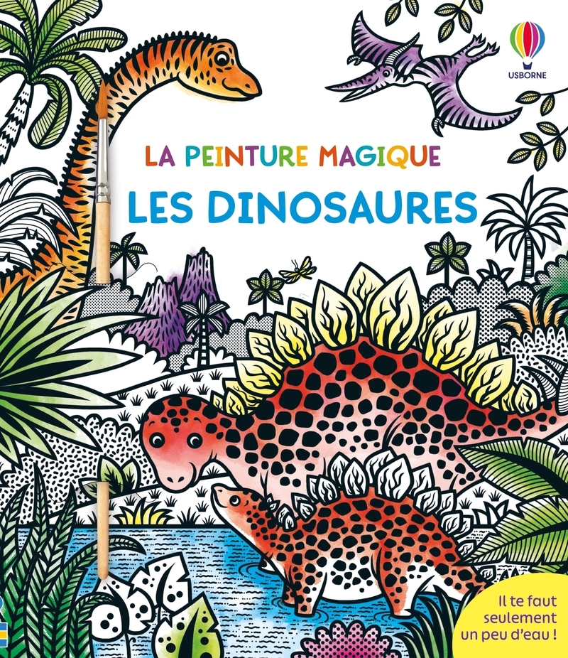Un livre de peinture magique pour donner des couleurs à de nombreux dinosaures... comme par magie ! Des vélociraptors en pleine chasse, des ptérodactyles qui volent dans le ciel, des diplodocus qui mangent les feuilles des arbres, la naissance d'un bébé dinosaure et bien plus encore : avec le pinceau fourni, passe un peu d'eau sur les illustrations en noir et blanc pour faire apparaître les couleurs comme par magie. Une activité calme et non salissante ! - 16 illustrations en noir et blanc à colorier - Il suffit d'un peu d'eau pour révéler les couleurs - Un rabat étanche permet de peindre chaque page tout en protégeant celles qui suivent - Les pages détachables permettent d'afficher ses œuvres un peu partout dans la maison - De toutes nouvelles éditions 100% recyclables et un pinceau de qualité avec un manche en bambou - Une activité calme, non salissante et qui occupe les enfants pendant des heures - Découvrez les autres titres de la collection La peinture magique ainsi que la collection Ma première peinture magique pour les enfants dès 3 ans