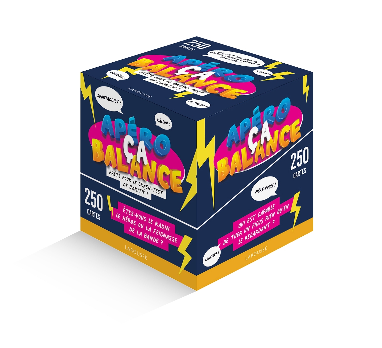 PRÊTS POUR LE CRASH-TEST DE L’AMITIÉ ?Envie de balancer de gros dossiers sur vos amis ou d’apprendre leurs pires penchants et leurs petites habitudes ? Chacun votre tour, lisez une carte-question au reste du groupe, et laissez les langues se délier… Qui ne se lave jamais entre les doigts de pied ? Qui fait le plus peur le lendemain d’une soirée ? Les avis divergent ? Alors place au débat !Êtes-vous le radin, le héros ou la feignasse de la bande ?