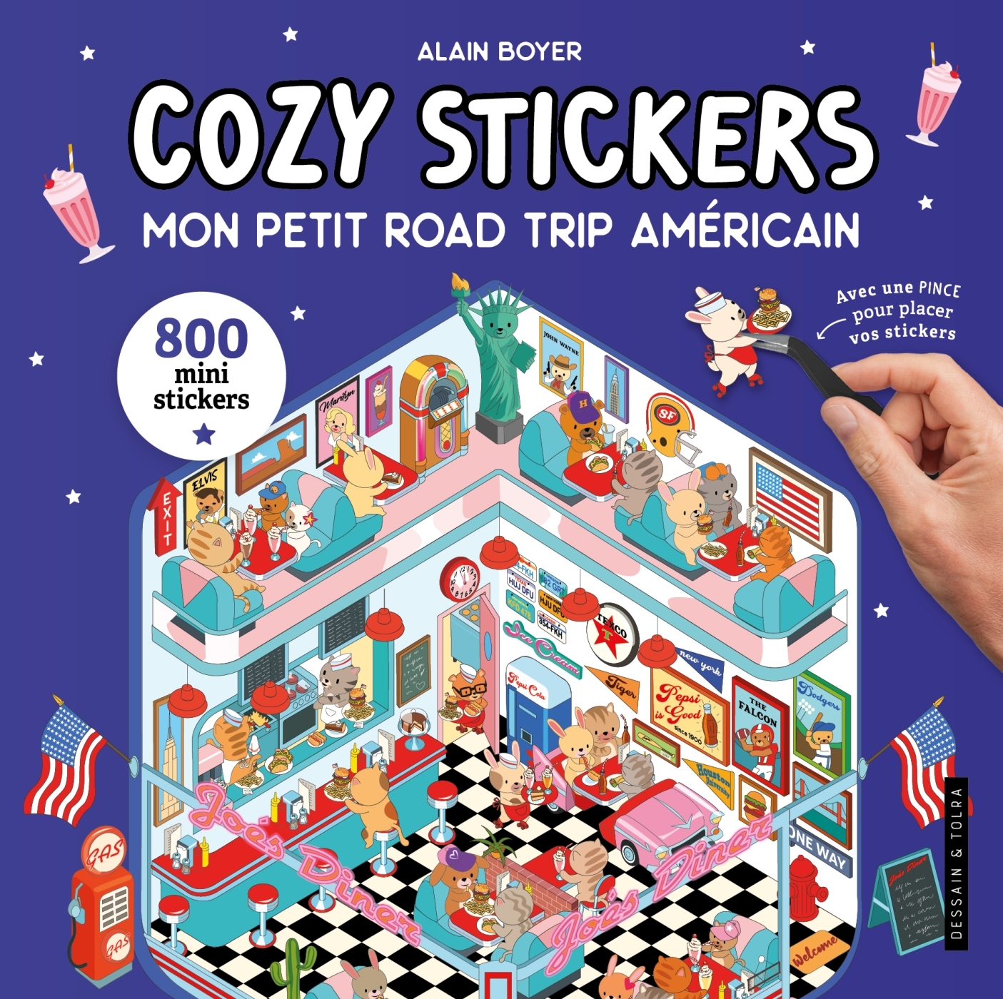 Composez et découvrez des scènes trop craquantes avec des personnages tout droit sortis des États-Unis : un tournage plein d'action à Hollywood,le Far West et ses cowboys, l'effervescence de New York...- 5 décors à compléter- 15 planches de stickers à coller à l’aide d’une pince (800 stickers !)-À vous de créer votre univers !