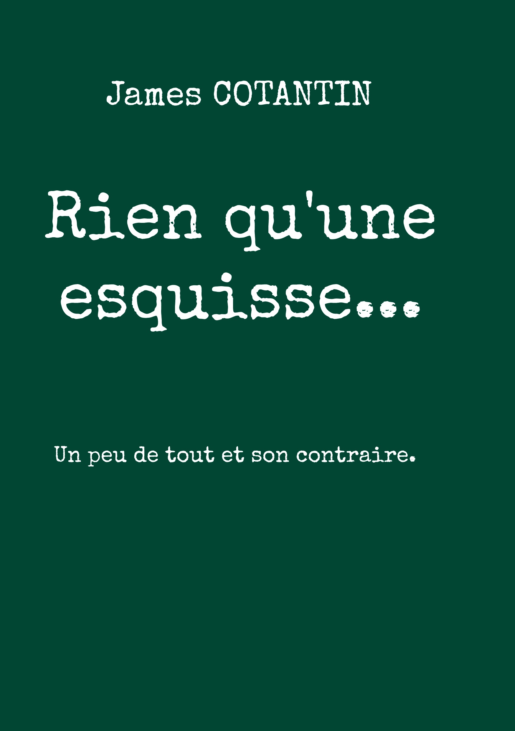 James Cotantin jusqu'à présent noircissait des cahiers par plaisir égoïste d'écrire et conservait précieusement ses compositions dans un coin de sa mémoire... et de sa bibliothèque.Il a décidé aujourd'hui de vous inviter à partager un peu de sa vie à travers ce recueil.Une première publication mêlant les vers et la prose, l'espoir de la nostalgie, le sérieux de la dérision, le déraisonnable de la sagesse et la rationalité de l'absurde. Il signe ici un ouvrage où chacun pourra venir picorer au gré de l'humeur et du moment.