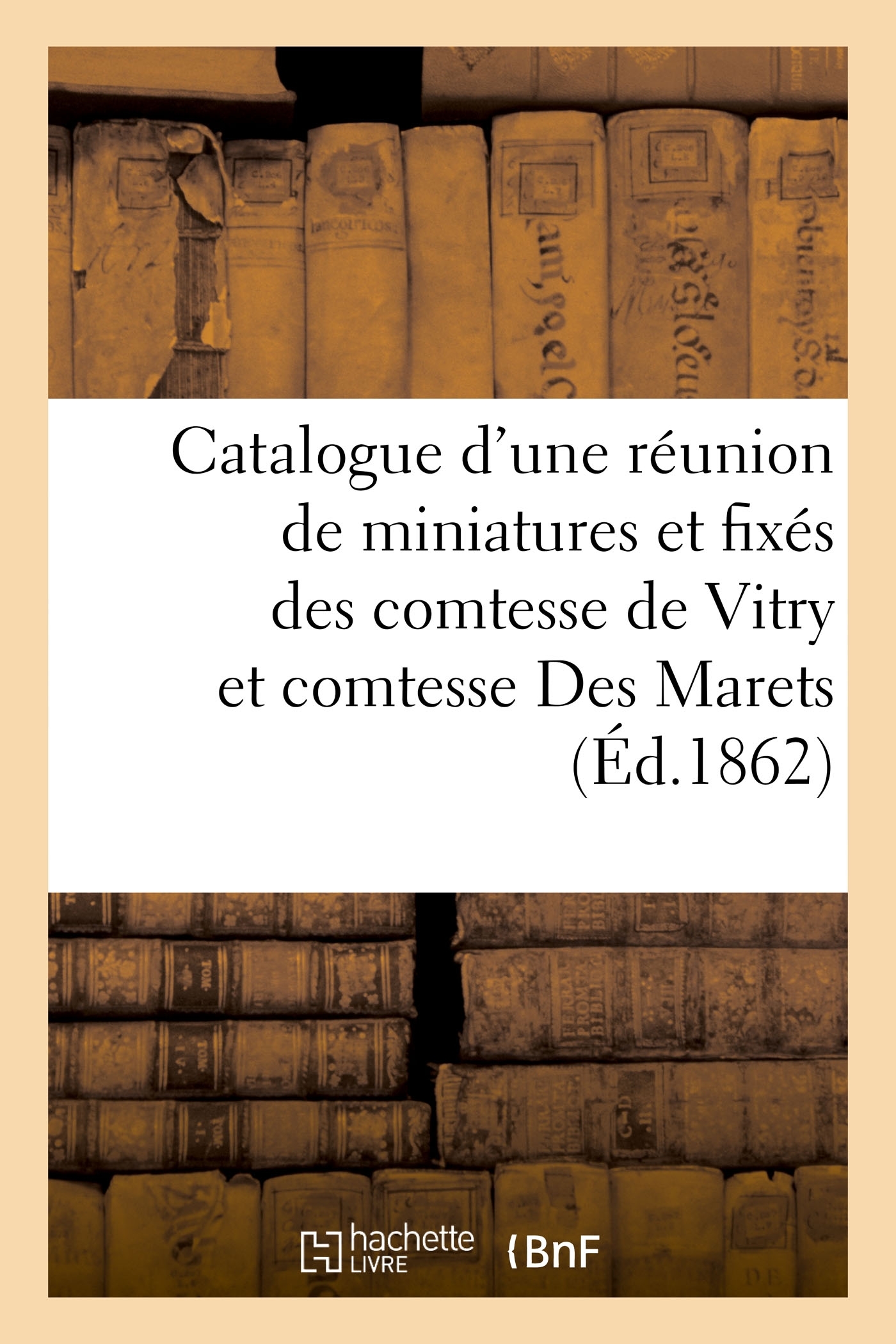 Catalogue d'une belle réunion de miniatures et fixés... recueillis par la comtesse de Vitry et la comtesse Des Marets... / [expert] MannheimDate de l'édition originale : 1862Le présent ouvrage s'inscrit dans une politique de conservation patrimoniale des ouvrages de la littérature Française mise en place avec la BNF. HACHETTE LIVRE et la BNF proposent ainsi un catalogue de titres indisponibles, la BNF ayant numérisé ces oeuvres et HACHETTE LIVRE les imprimant à la demande. Certains de ces ouvrages reflètent des courants de pensée caractéristiques de leur époque, mais qui seraient aujourd'hui jugés condamnables. Ils n'en appartiennent pas moins à l'histoire des idées en France et sont susceptibles de présenter un intérêt scientifique ou historique. Le sens de notre démarche éditoriale consiste ainsi à permettre l'accès à ces oeuvres sans pour autant que nous en cautionnions en aucune façon le contenu. Pour plus d'informations, rendez-vous sur www.hachettebnf.fr