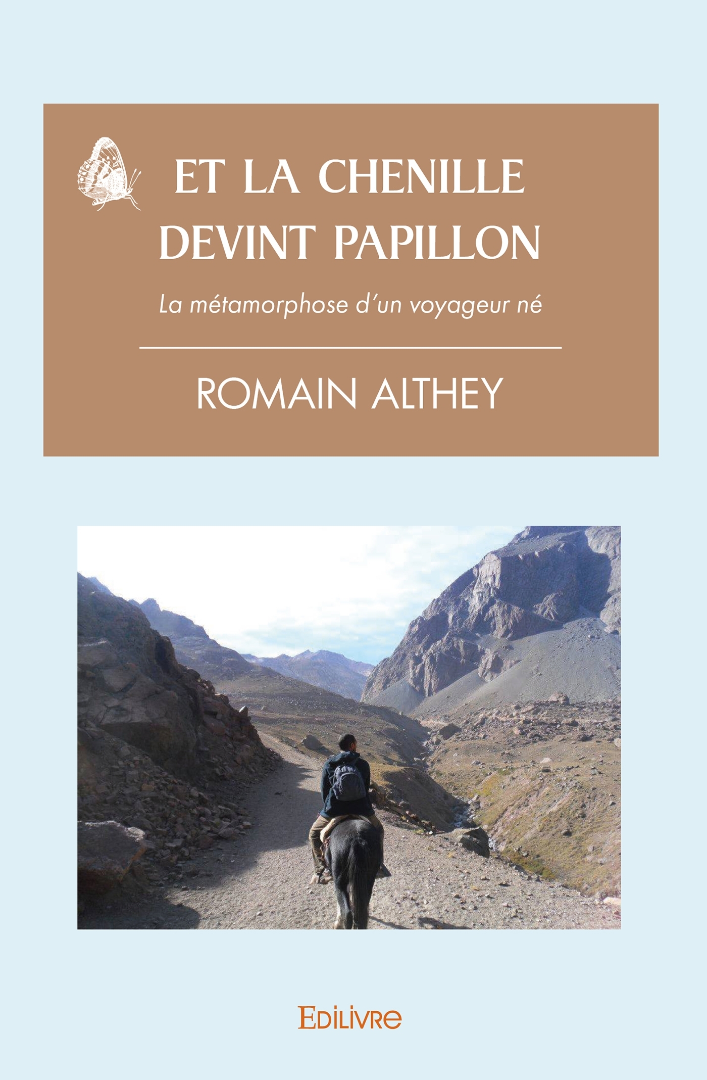 À la fin de ses études, la vie de Romain Althey était toute tracée. Il se destinait à faire carrière dans les biotechnologies, rencontrer la femme de sa vie, avoir des enfants... Cependant, poussé par une irrésistible envie de découvrir le monde, il entreprit ses premiers voyages. C'est alors qu'il s'est vu renaître ou, plutôt, c'est là qu'il a vu se révéler sa vraie nature. Telle la chenille se métamorphosant en papillon, il réalise qu'il se transforme pour devenir ce qu'il a toujours été...