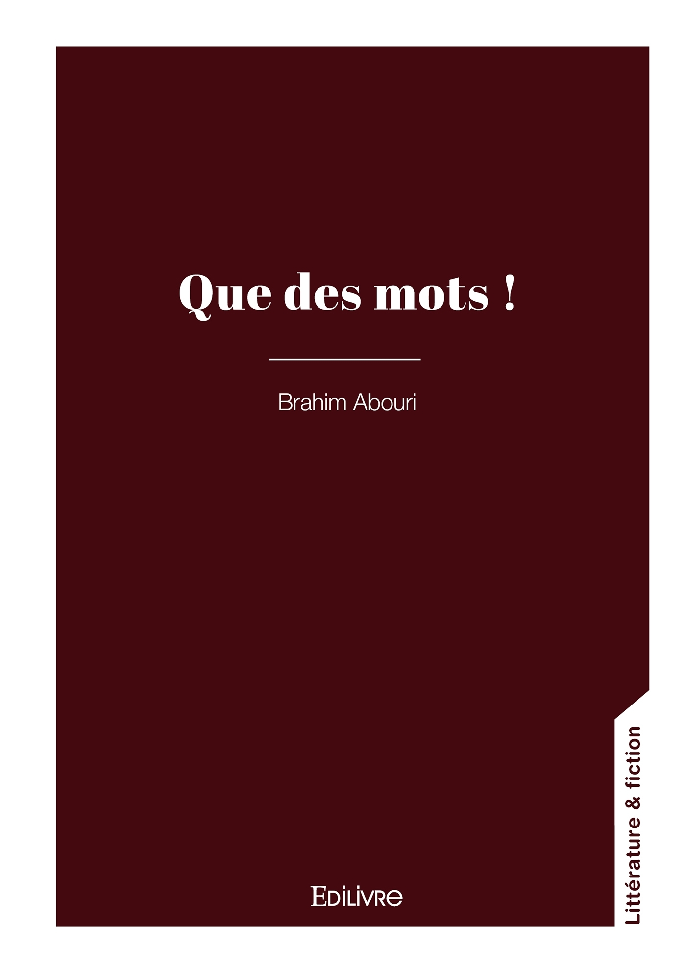 Que des mots ! est un écrit autobiographique où l'auteur, du haut de sa soixantaine, relate non sans amertume les événements majeurs ayant jalonné son enfance, sa scolarité, sa vie estudiantine à Agadir, sa profession en tant qu'enseignant de français et sa modeste carrière d'écrivain en herbe. Soit une trame narrative dans laquelle les mots essaient de panser les blessures de certains maux : une enfance malheureuse et pleine de violence, le divorce des parents, une dépression prématurée et invalidante à plus d'un égard, les affres du métier et les tribulations d'un parcours scriptural raté dans une société inculte et pleine de paradoxes.