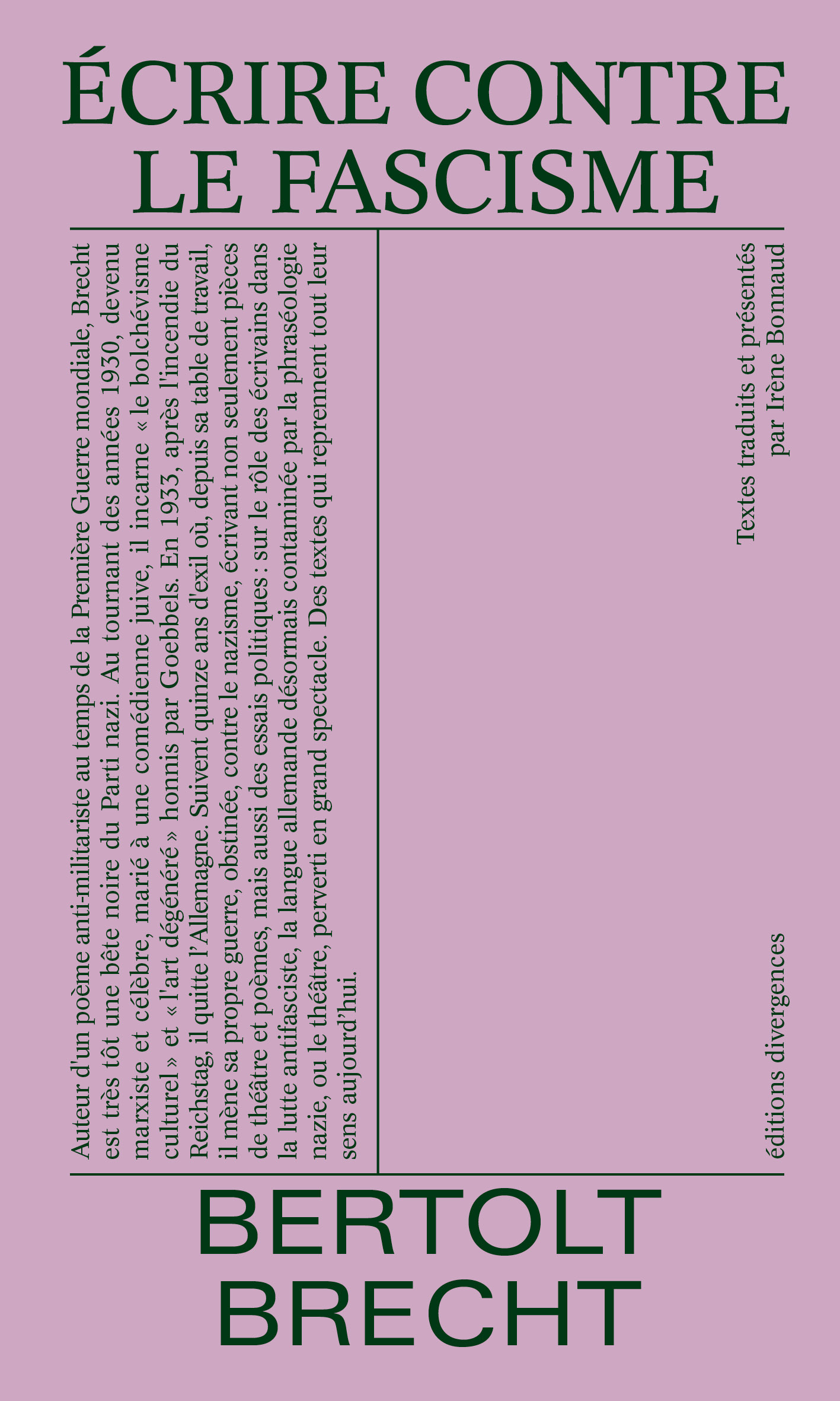 Auteur d'un poème anti-militariste au temps de la Première Guerre mondiale, Brecht est très tôt une bête noire du Parti nazi. Au tournant des années 1930, devenu marxiste et célèbre, marié à une comédienne juive, il incarne « le bolchévisme culturel » et « l'art dégénéré » honnis par Goebbels. En 1933, après l'incendie du Reichstag, il quitte l’Allemagne. Suivent quinze ans d'exil où, depuis sa table de travail, il mène sa propre guerre, obstinée, contre le nazisme, écrivant non seulement pièces de théâtre et poèmes, mais aussi des essais politiques : sur le rôle des écrivains dans la lutte antifasciste, la langue allemande désormais contaminée par la phraséologie nazie, ou le théâtre, perverti en grand spectacle. Des textes qui reprennent tout leur sens aujourd’hui.