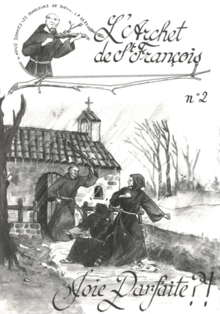 La joie. Ce mot enchanteur, capable d'illuminer le visage le plus assombri, d'attendrir le coeur le plus endurci, ce mot semble mettre en branle l'univers entier : repos des bienheureux dans le ciel, espérance de nous autres sur la terre, amer regret des réprouvés. Rien n'est plus convoité que la joie, et pourtant, rien n'est plus méconnu. Certes, avec un peu de philosophie, nous disons que la joie est le sentiment qui résulte de la possession du bien, mais voilà que le problème s'embrouille : quel est ce bien ? Où est-il pour que nous le possédions ? Sans hésiter, les uns le cherchent dans la pleine jouissance de la vie présente : plaisirs voluptueux, compte en banque copieux, domination sans frontières , d'autres, plus mesurés, postulent au plein épanouissement de la vie, dans un doux équilibre d'efforts et de plaisirs , enfin, les plus généreux trouvent leur bien dans le don de soi pour un monde meilleur. Mais pourquoi nous égarer ainsi dans les couloirs ténébreux du coeur humain, comme si nous étions livrés à nous-mêmes, sans maître, sans lumière, sans Sauveur ? Comment hésiter un instant sur notre véritable bien, alors que l'exemple de la plus sublime perfection nous éblouit sous les puissants projecteurs de la Crèche, du Calvaire et du Sépulcre glorieux ? La joie ne serait-elle pas de ce côté ? Saint François est catégorique : la joie parfaite est de souffrir pour l'amour de Jésus crucifié afin d'être glorifié avec Lui. Ne suffit-il pas au disciple d'être comme son maître, et au serviteur comme son seigneur ( Matth. X. 25 ) ? Non content de prêcher et d'enseigner cette joie à ses frères, le Séraphin d'Assise se fit même jongleur pour la chanter au monde entier. Pardon, non pas seulement jongleur, mais jongleur de Dieu, car c'est de la joie parfaite qu'il s'agit. Chers enfants et amis de saint François, selon la parole de notre divin Maître, donnons gratuitement ce que nous avons reçu gratuitement (Matth. X. 8 ). La joie parfait est l'héritage le plus précieux de notre Père saint François, sachons le faire fructifier pour nous-même et pour notre monde, si triste et si pauvre d'amour. Que ces quelques nouveaux coups d'archet séraphique embrasent plus que jamais, de la joie la plus pure, notre chère famille franciscaine, pour la goire de notre Dieu, pour la consolation de nos âmes et pour le salut du monde entier !