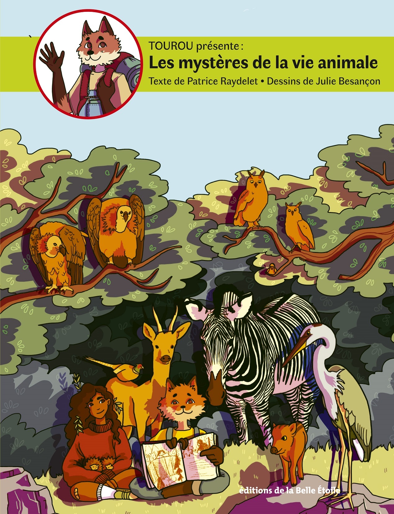Tourou, renardeau rusé et malicieux, nous invite à découvrir les astuces utilisées par les animaux pour survivre dans leur environnement. Il nous raconte d’abord une histoire dont les personnages sont des animaux. Ensuite il explique en détail le sujet: Le rôle des plumes, la sélection naturelle, la chaîne alimentaire, l’adaptation du bec à la nourriture, la technique de défense. En fin de chapitre figurent les cartes d’identité des animaux présents dans les cinq histoires du livre.Cet ouvrage ludique et pédagogique, magnifiquement illustré permet à toute la famille de découvrir et de mieux comprendre la vie des animaux. Trois tomes sont prévus dans cette collection jeunesse qui s’adresse aux enfants de 7 à 12 ans et à leurs parents ou grands-parents.