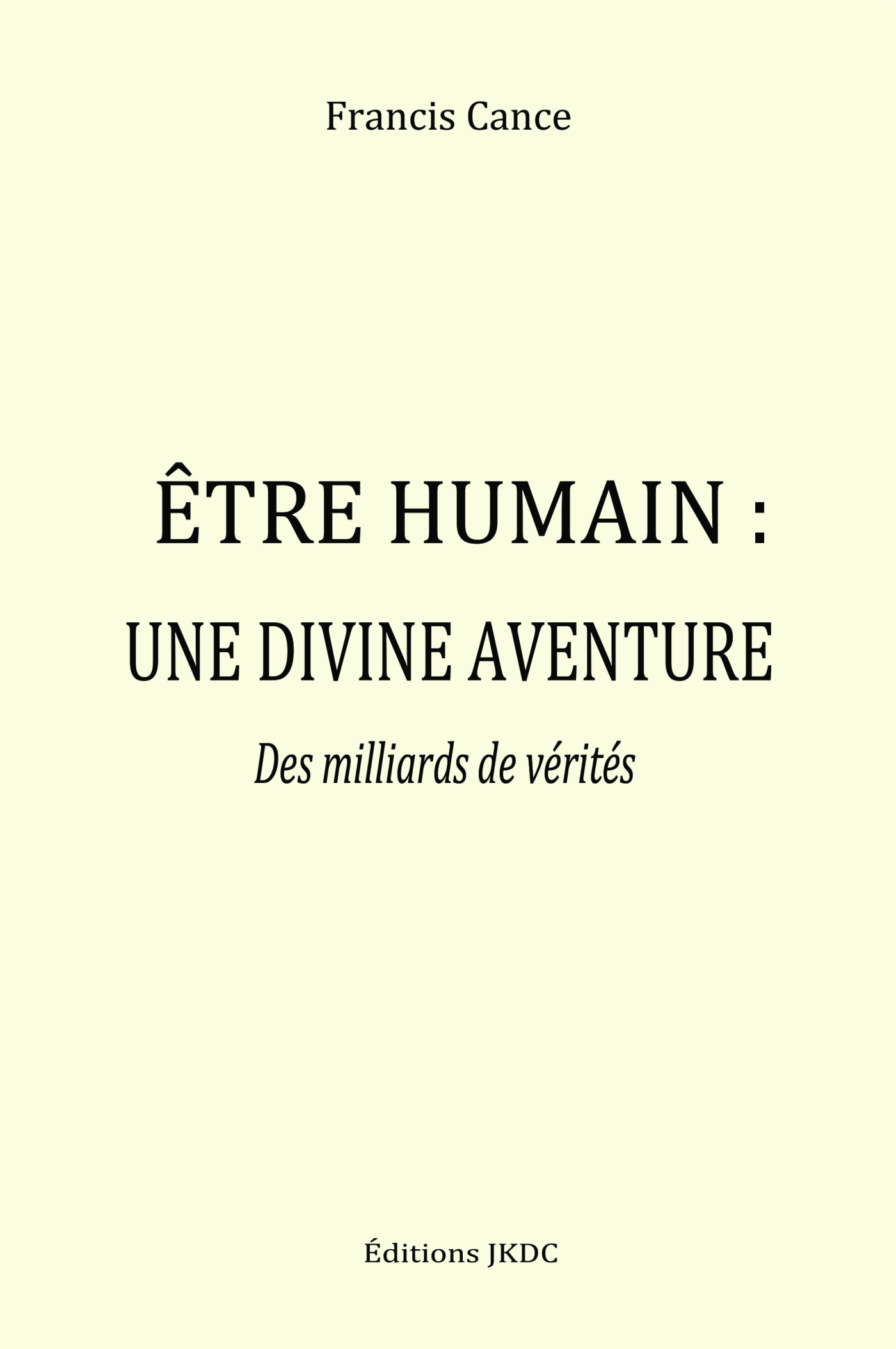 Ne sommes-nous que des créatures, comme l'affirment les dogmes religieux et les sciences matérialistes ? Ou bien sommes- nous des créateurs, de la nature même de ce que nous appelons dieu. Dans ce monde de l'hyper consommation et des misères les plus profondes où l'humanité s'égare, il est peut-être grand temps pour l'Être sous forme humaine de recouvrer sa véritable identité : celle d'un Être d'essence divine. C'est à un véritable changement de paradigme que l'auteur nous invite. Avec une pensée ressourcée à cette conscience d'être divin, nous observerons les effets de ce regard neuf sur les différentes activités humaines, ce qu'elles sont aujourd'hui et ce qu'elles pourraient devenir demain. Ce qui est ici remis en cause n'est pas le fait d'être une créature, mais l'illusion de n'être « que » cela. La lecture du présent ouvrage révèle la présence du créateur à l'origine de la créature que nous sommes. À travers le témoignage de textes de sagesse anciens et de récentes découvertes de la physique et de la biologie, ce livre nous invite à un profond voyage au plus près de notre vérité. Celle que chacun de nous a créée. Francis CANCE