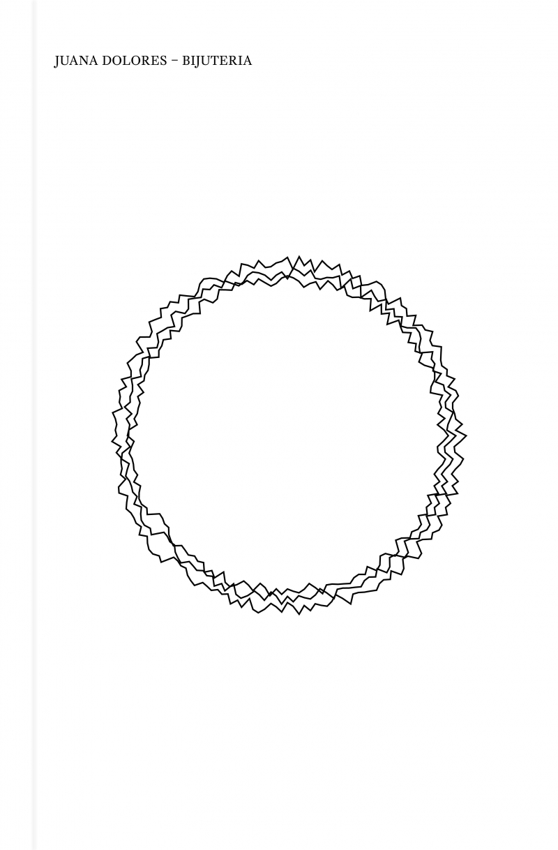 Juana Dolores est née en 1992 à El Prat de Llobregat, dans la banlieue de Barcelone. Bijuteria, son premier livre de poésie, est aussi la bannière rouge d’une écriture manifeste, qui fait se mêler l’underground barcelonais, les trésors amoureux de la tradition courtoise et les motifs politiques renoués de la stylisation de soi et de la lutte des classes. Œuvre de fusion au sens propre, orfèvrerie impure, Bijuteria donne consistance à la coexistence des contraires : splendeurs et déchets, parures et nudités, amours et solitudes.Poète et artiste multidimensionnelle, descendante d’une famille de la classe ouvrière andalouse émigrée en Catalogne, Juana Dolores est communiste. Contre les réductions identitaires, elle revendique un mouvement maximal, embrassant l’introversion et les stupéfiants, la foi et les adultères, les traditions ouvrières et les esthétiques subalternes — de Marx aux divas féminines prolétaires.