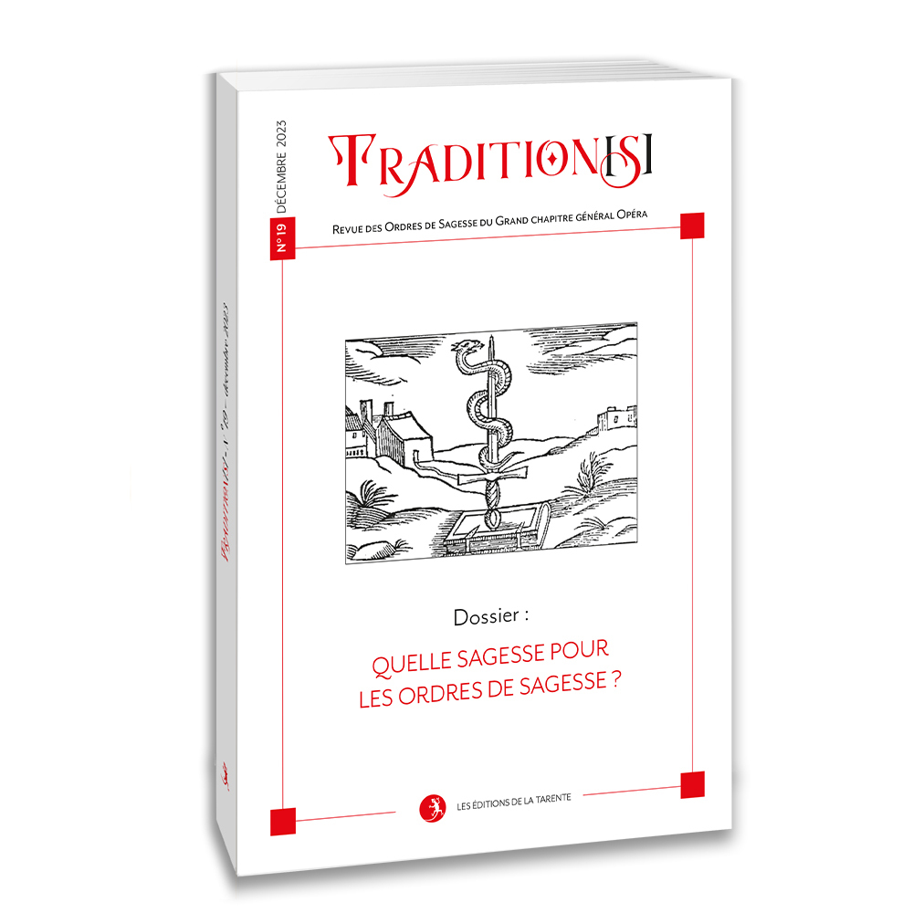Tradition[s] propose un regard d’aujourd’hui sur les grands enjeux spirituels des hauts grades.Revue n° 19 du Grand Chapitre Général OpéraLa Sagesse, thème du dossier principal, est un idéal d’accord avec les mondes – célestes et sublunaires – qui fait l’objet de mises en récits dès l’aube de l’humanité, notamment avec l’épopée de Gilgamesh. Elle constitue, pour les francs-maçons, un des noms du terme du chemin. Quelle est donc cette sagesse vers laquelle les « Ordres de sagesse » du Rite Français Traditionnel se proposent de mener l’initié ? A-t-elle encore une pertinence aujourd’hui ? C’est à ces questions que le présent volume tente de répondre à la lumière des rituels, « discours historiques » et catéchismes qui donnent des indices sur ce que pourrait être une sagesse de notre temps.SOMMAIRE :- Les mots du Très Sage & Parfait Grand Vénérable: 3- Renaissance : 4- DOSSIER?: Quelle sagesse pour les Ordres de sagesse?? : 6Quelle sagesse pour les « grades de Sagesse »?? : 7Les Ordres de Sagesse?: essai de datation du terme : 11Lettre à Sophia : 27La verticalisaion de la Sagesse: 32La sagesse au fil des mots: 49Une sagesse occidentale : 57- VARIA : 68Le Bordeaux maçonnique: 69Les spécificités des Rites Français : 80L’homme sans nom ou l’histoire de l’inconnu : 96- L’arbre d’Hénoch : la symbolique alchimique du Rite français Moderne au 2e Ordre : 103