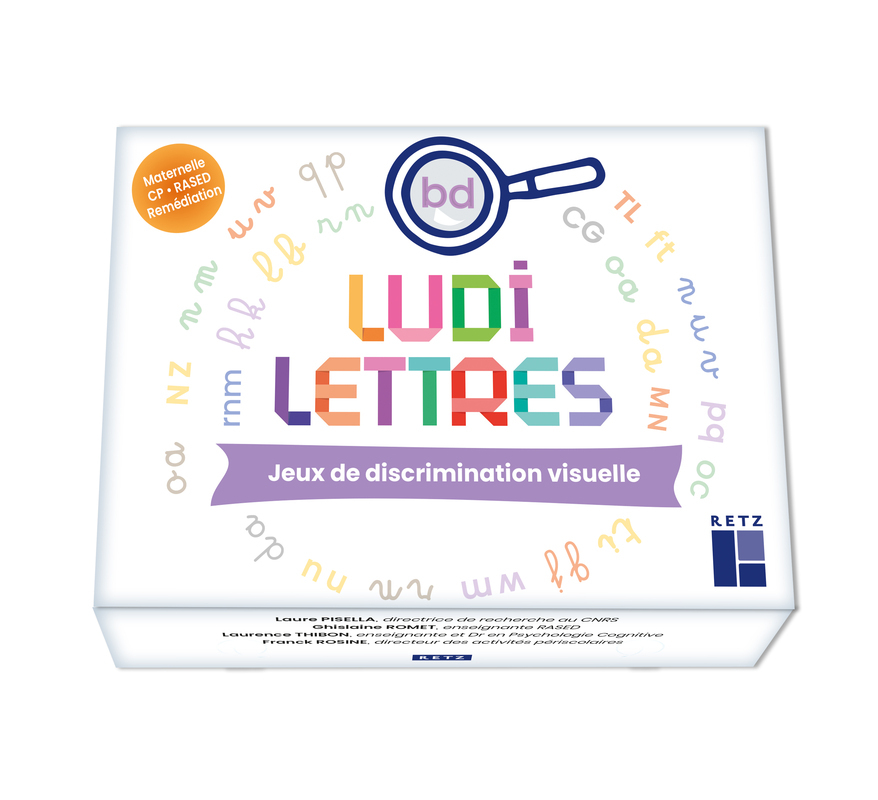 La mallette LudiLettres permet de développer, de façon ludique et efficace, la reconnaissance des lettres et séquences de lettres aux cycles 1 et 2. Elle peut être utilisée en remédiation au cycle 3 et en rééducation (orthophonique, orthoptique...) à tous les âges. Cette mallette de jeux a été développée et testée par l'équipe pluri-disciplinaire de l'association " Voir l'arbre et la forêt ". Les jeux ont été conçus sur la base de résultats de la recherche scientifique et des programmes pédagogiques en vigueur. Ils peuvent être utilisés en groupe classe de la PS au CP, en groupe externalisé (RASED), en périscolaire, en séance de rééducation individuelle (orthophonie, orthoptie...). La mallette LudiLettres a été conçue : • pour tous : un entraînement précoce et spécifique des compétences d'analyse visuelle des lettres et des séquences de lettres est nécessaire à l'acquisition de la lecture et de l'écriture ; • pour les enfants atteints de troubles d'attention visuo-spatiale : un dépistage précoce et un entraînement renforcé peuvent prévenir des retards d'automatisation de la lecture ou diminuer la sévérité d'expression des troubles. Conforme aux nouveaux programmes, cette mallette est destinée à : • exercer les habiletés visuo-perceptives de reconnaissance des lettres ; • automatiser l'exploration oculaire puis attentionnelle des séquences de lettres. • Compétence ciblée par les jeux Minu , Maju et Cursi : reconnaissance des lettres . Elle vise spécifiquement la reconnaissance visuelle des lettres, c'est-à-dire la discrimination des lettres morphologiquement proches en explicitant leurs signes communs et leurs signes distinctifs. • Compétences ciblées par les jeux Triplets et Puzzmots : traiter l'ordre des lettres et élargir l'empan visuo-attentionnel pour repérer des séquences de lettres . Les cinq jeux de la mallette LudiLettres proposent une progression d'apprentissage dont l'objectif est de développer les capacités des élèves à identifier des compositions de signes graphiques, les lettres dans les trois écritures, puis des séries de lettres et des mots . Cette approche inédite permet à l'enfant d'enrichir sa mémoire orthographique des lettres, graphèmes et mots. À terme, l'entrée dans la lecture sera plus fluide. Les confusions visuelles, notamment entre les lettres orientées en miroir et entre les séries de lettres qui se distinguent juste par leurs positions relatives, sont particulièrement mises en exergue dans cette série de jeux. Ces confusions entraînent des difficultés récurrentes et persistantes dans l'apprentissage de la lecture. Les activités spécifiques de la mallette aideront l'enfant à s'en s'affranchir. Ainsi il est possible de prévenir les difficultés en utilisant la mallette dès la petite section mais également d' y remédier au cours des apprentissages.