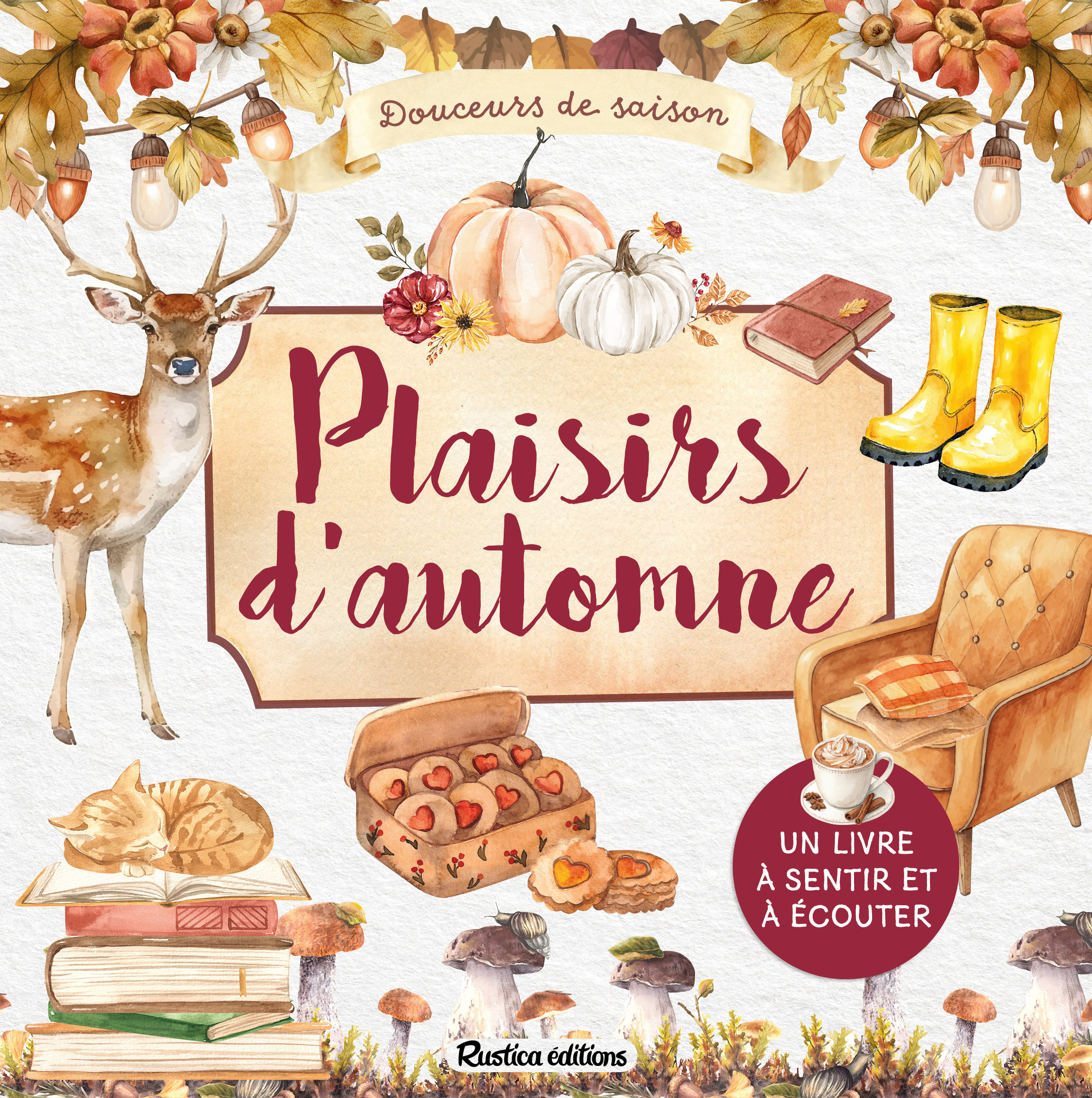 Le premier livre olfactif et sonore pour adultes : un pur moment cocooning !Le vent dans les arbres, le parfum de la tarte aux pommes ou du chocolat chaud, la chouette qui ulule dans la nuit d'Halloween... retrouvez au fil des pages des pastilles olfactives et des QRcodes sonores pour une douce expérience sensorielle.Les sons, les images, les odeurs se répondent : laissez-vous envahir par les petits plaisirs d'automne.