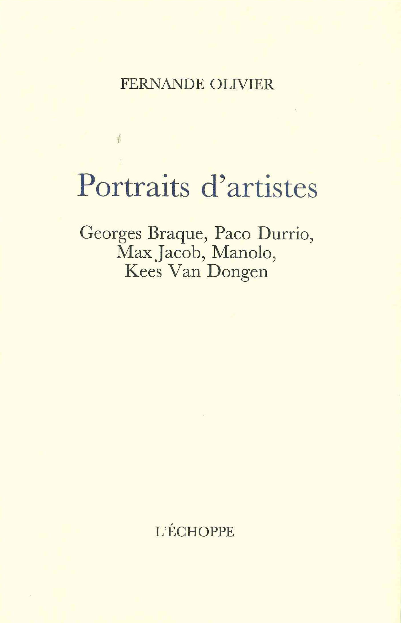 Fernande Olivier fut la compagne du jeune Picasso à Paris de 1904 à 1911. Elle a connu de très près de nombreuses figures du monde artistique alors en pleine ébullition. Dans les années 30 et plus tard, elle a écrit deux ouvrages de souvenirs sur Picasso et le milieu des artistes à Montmartre et Montparnasse. En 1934, elle fit paraître dans le quotidien L’Intransigeant cinq portraits d’artistes, au ton vif et très enlevé. Ces textes étaient restés oubliés ; les voici mis à disposition des lecteurs curieux.