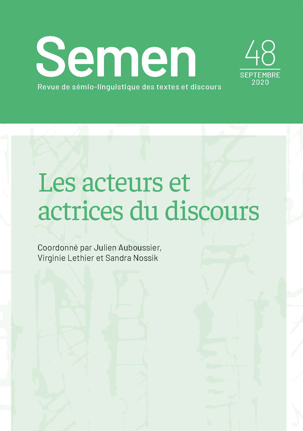 Numéro Hors-série rassemblant des contributions qui questionnent la notion d'acteur social au prisme de l’analyse du discours, des sciences de la communication et des sciences sociales. à partir d’objets d’études et de corpus très divers (discours médiatiques, politiques, entretiens, interactions…), et dans une perspective interdisciplinaire, ces articles permettent d’appréhender la construction des acteurs sociaux par les discours en circulation dans l’espace public, ainsi que d’interroger le statut des auteurs multiples de ces discours sociaux.