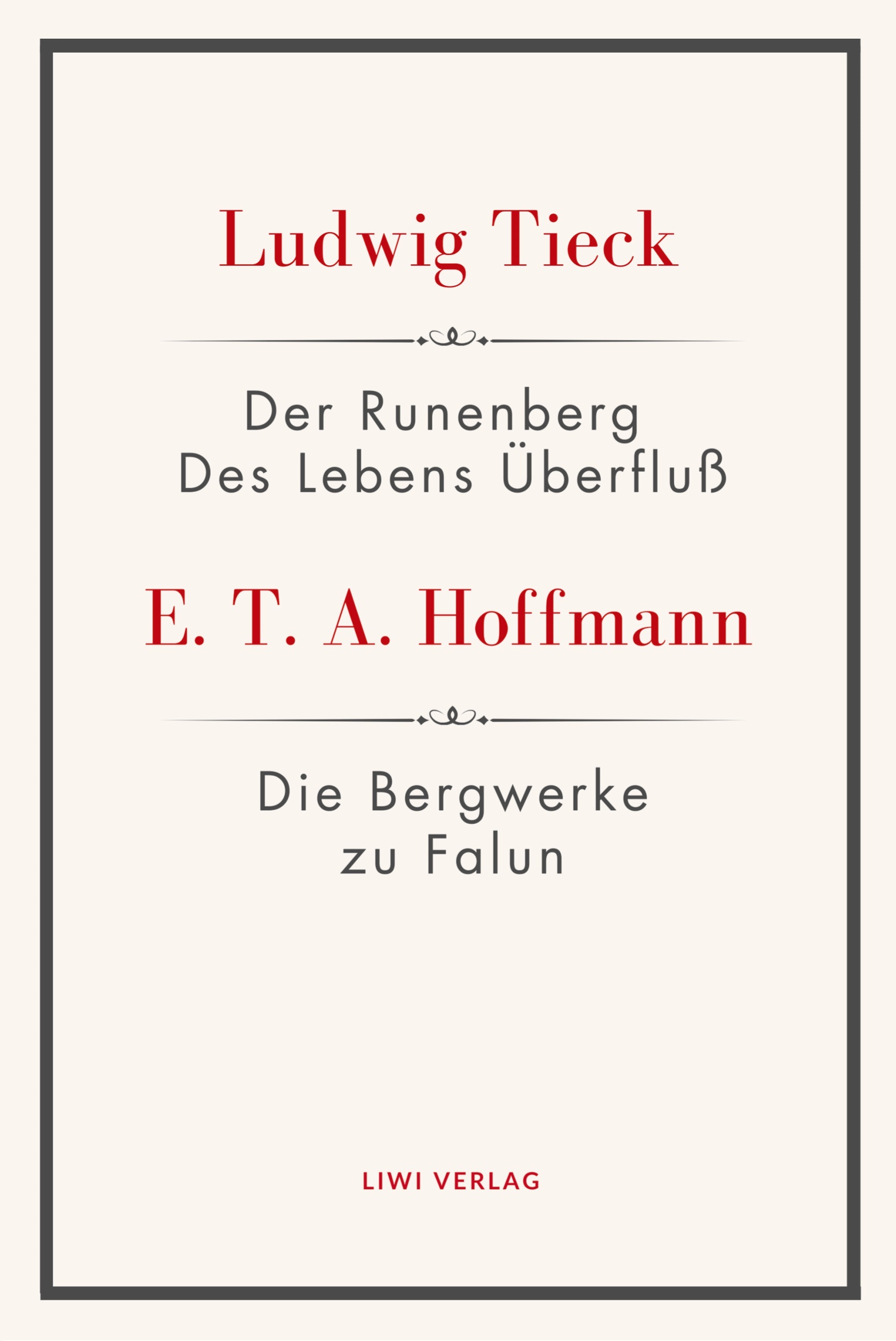 Literatur um 1800: Ludwig Tieck:Der Runenberg (1804) / Des Lebens Überfluß (1839). E. T. A. Hoffmann: Die Bergwerke zu Falun (1819)Diese Ausgabe versammelt drei prägende Prosatexte der deutschen Romantik, die jeweils eine Begegnung mit dem Unheimlichen, dem Inneren und dem Grenzenlosen erzählen.In Tiecks "Der Runenberg" gerät ein junger Mann in den Bann einer rätselhaften Macht der Berge, die sein Leben unwiderruflich verändert."Des Lebens Überfluß" führt die Spannung zwischen bürgerlicher Ordnung und geheimnisvoller Verlockung weiter und zeigt, wie dünn die Schicht ist, die den Alltag von der poetischen Fremdheit trennt.Hoffmanns "Die Bergwerke zu Falun" schließlich schildert die mythisch aufgeladene Sehnsucht eines jungen Bergmanns, der zwischen Liebe, Schicksal und dem Ruf der Tiefe steht.Alle drei Texte vereinen zentrale Motive der Romantik:Naturerfahrung, Verwandlung, innere Zerrissenheit, das Unbewusste und die Faszination des Geheimnisvollen.Diese Taschenbuch-Neuausgabe eignet sich für Schule, Abitur und Studium und bietet einen kompakten Zugang zur deutschen Literatur um 1800.Ludwig Tieck.Der Runenberg / Des Lebens Überfluß.E. T. A. Hoffmann.Die Bergwerke zu Falun.Textausgabe zur Literatur um 1800 für Schule, Abitur und Studium.Erstdruck "Der Runenberg" in: Taschenbuch für Kunst und Laune, C. G. Cramer, Köln 1804.Erstdruck "Des Lebens Überfluß" in: Urania. Taschenbuch auf das Jahr 1839, Leipzig 1839.Erstdruck "Die Bergwerke zu Falun" in: Die Serapionsbrüder. Reimer, Berlin 1819-1821.Durchgesehener Neusatz, der Text dieser Ausgabe folgt:Ludwig Tieck: Werke in vier Bänden. Winkler Verlag, München 1963.E. T. A. Hoffmann: Poetische Werke in sechs Bänden, Aufbau Verlag, Berlin 1958.Vollständige Neuausgabe, Göttingen 2025.LIWI Literatur- und Wissenschaftsverlag