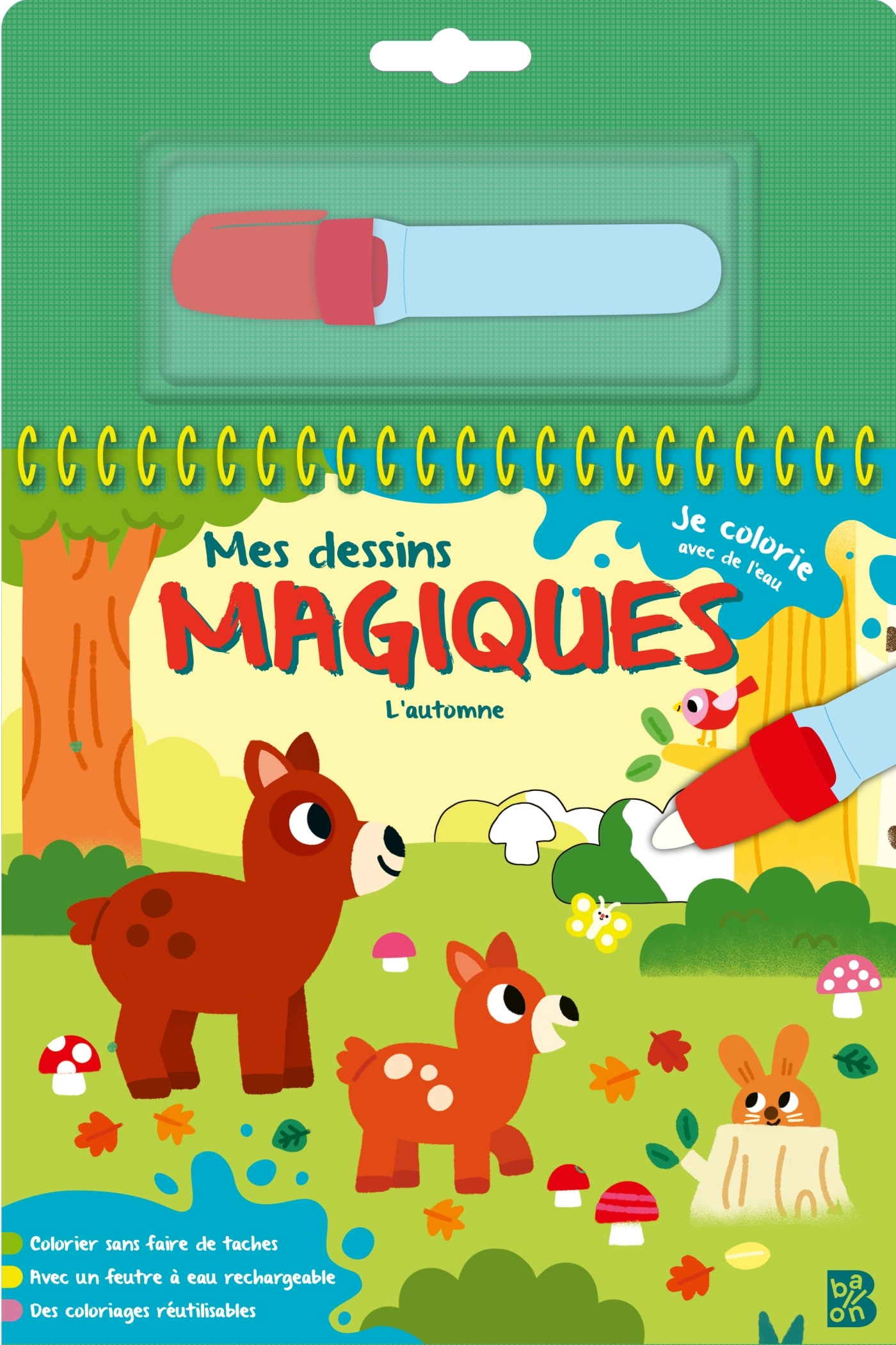 Comment utiliser ce livre ?Remplis le feutre d'eau et passe-le sur les coloriages. C'est magique, les couleurs apparaissent ! Ensuite, réponds aux questions et cherche les détails dans le dessin. L'eau a séché ? Alors, tu peux recommencer.