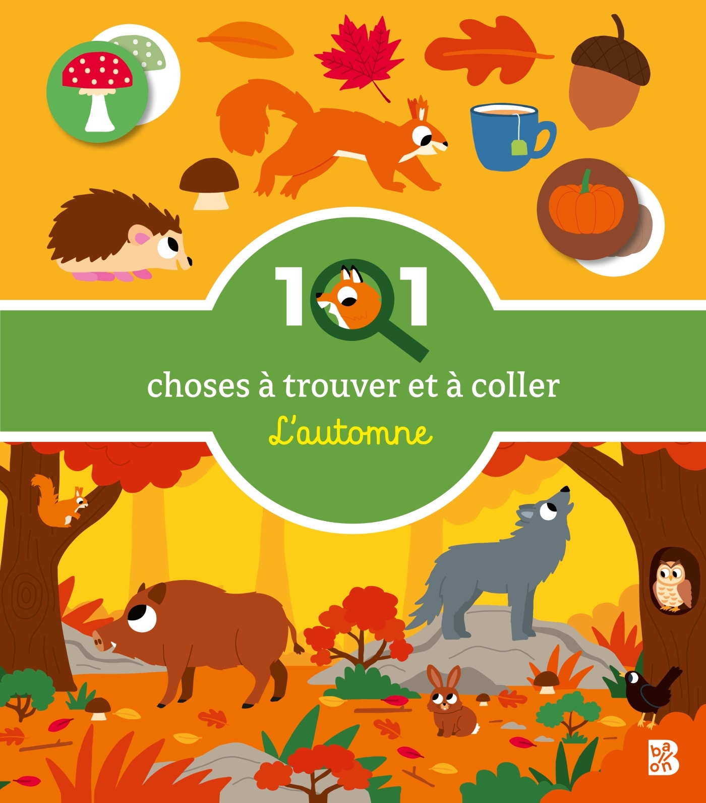 Pars à la découverte de l'automne avec ce livre rempli d'adorables animaux et de feuilles joliment colorées. À chaque double-page, tu devras chercher des éléments dans l'illustration et répondre à des petites questions. Tu apprendras aussi toutes sortes de nouveaux mots en plaçant les autocollants au bon endroit.