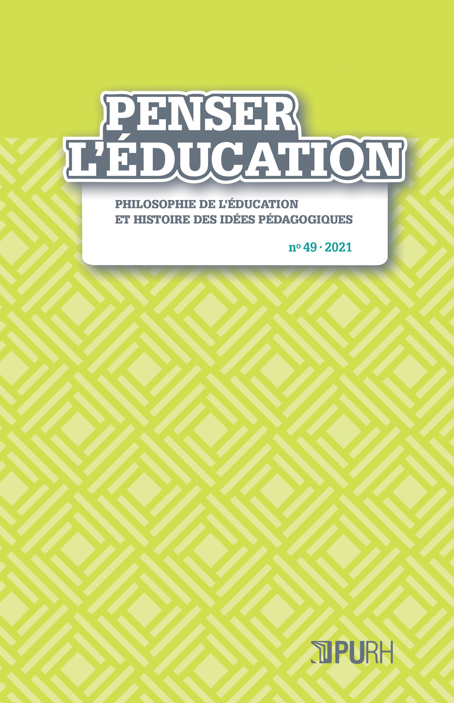 La revue Penser l'éducation est une revue scientifique internationale à comité de lecture, adossée au Centre interdisciplinaire de recherches normand en éducation et en formation (CIRNEF), laboratoire de l'université de Rouen.Cette revue, qui existe depuis 1996, s'inscrit dans le champ spécifique qui croise la philosophie de l'éducation et l'histoire des idées pédagogiques.Traditionnellement, ces deux aspects sont reliés et relèvent de la philosophie de l'éducation. Penser l'éducation n'est pas un titre anodin, il porte une injonction et une promesse: en ces temps de mutation, il s’agit de (re)penser, à nouveaux frais, l’éducation, dans ses principes, ses finalités, ses valeurs, ses pratiques et leurs conséquences.Deux numéros sont publiés chaque année. Ils ont la particularité d’être composés, sans contrainte thématique, uniquement de varia et de comptes rendus de lecture. La taille des articles n’est ni formatée ni normalisée, sans autre justification que celle d’un processus d’évaluation rigoureux.