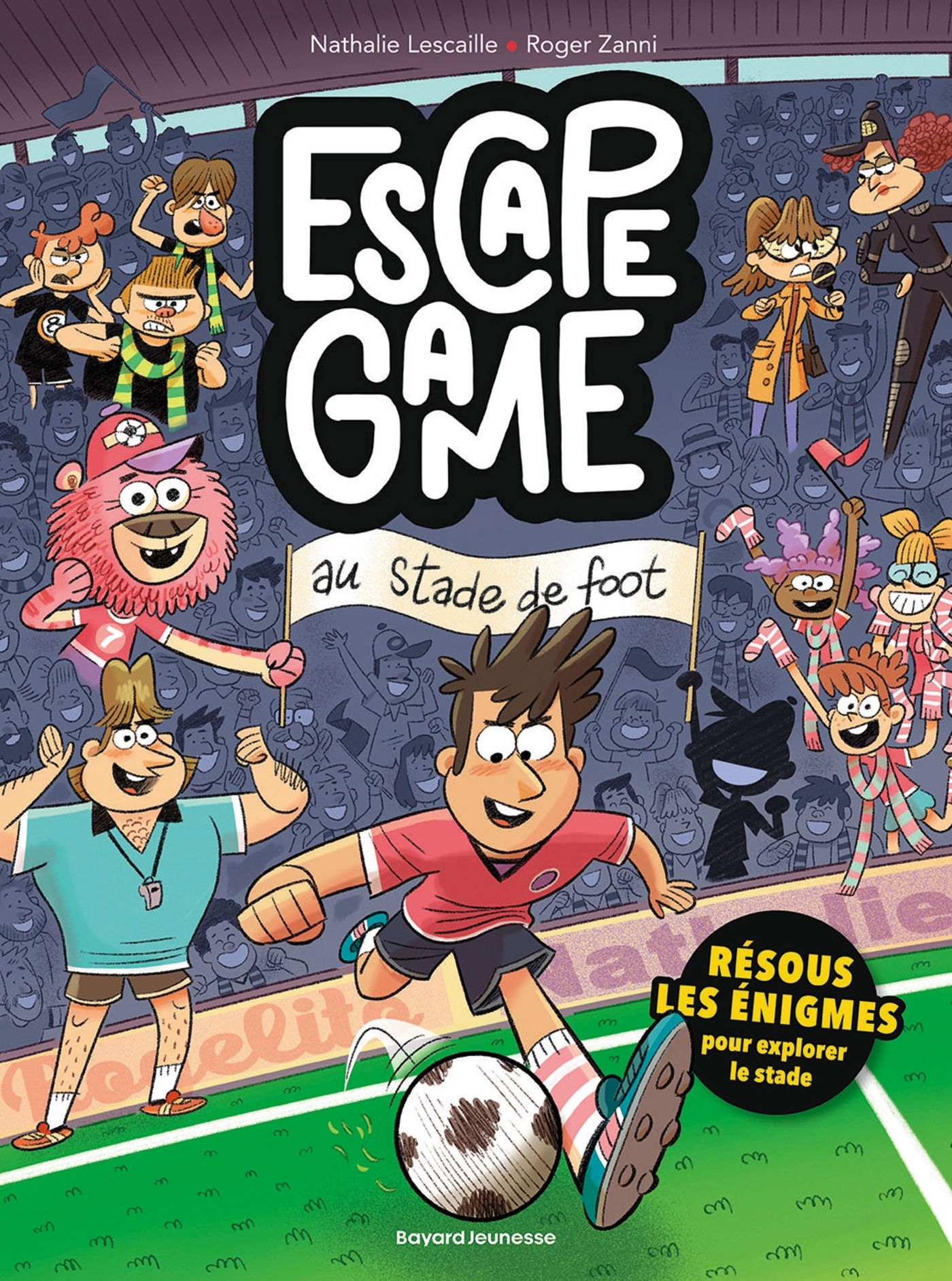 Incroyable : grâce à un concours, tu a la chance d'assister à un match de foot au Grand Stade ! Depuis les tribunes, tu vois tes joueurs préférés se passer le ballon. Le rêve ! À la mi-temps, tu décides d'aller faire un tour dans les coulisses du stade. Tu découvres salle d'entrainement, les vestiaires, le bureau des entraineurs, le musée, etc.Pour les fans de foot et d'énigmesDes jeux autour du foot, des infos rigolotes sur les coulisses du stade, et une histoire loufoque avec plusieurs fins selon tes choix.Un livre interactifDans ce livre, c'est toi le héros ou l'héroïne. À toi de résoudre les énigmes et de relever les défis pour déterminer la suite de l'aventure !