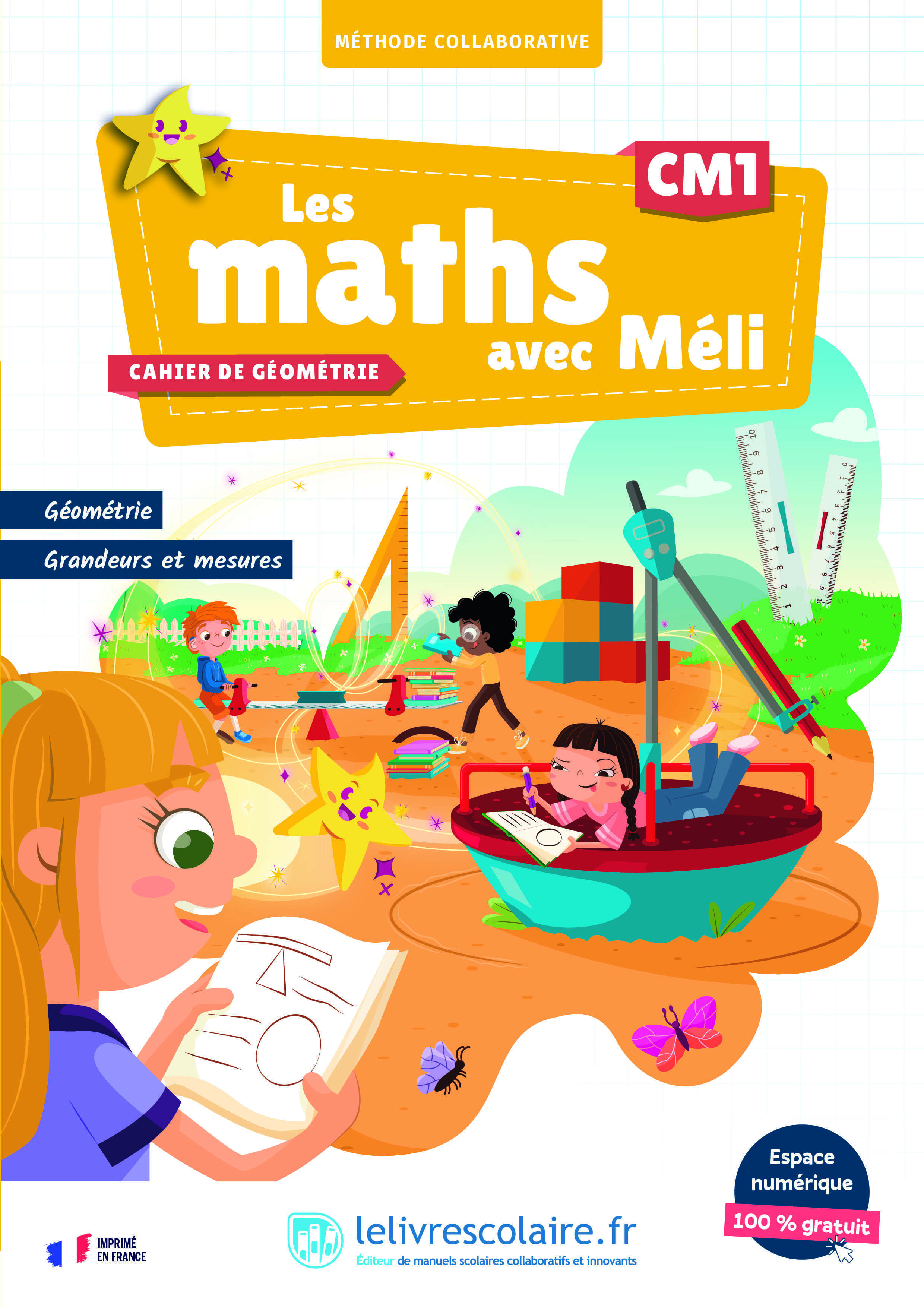 - Une méthode 100 % conforme aux nouveaux programmes, progressive et spiralaire, clé en main, avec de nombreuses pistes de différenciation.- Une attention spécifique portée à la proportionnalité, les probabilités, l’algèbre, et iniation à la pensée informatique.- Une méthode pensée pour travailler avec des classes en double niveau CM1-CM2 grâce à une programmation commune avec Les maths avec Méli CM2 et des outils numériques adaptés.Le cahier de géométrie, grandeurs et mesures : - Le cahier vient enrichir la méthode et propose une alternative aux fiches numériques. Il contient des fiches méthode, des exercices de tracés, et des activités ludiques exclusives au cahier.- Son format A4 facilite les tracés et sa prise en main. Le cahier comporte de nombreuses photographies et figures en couleur.