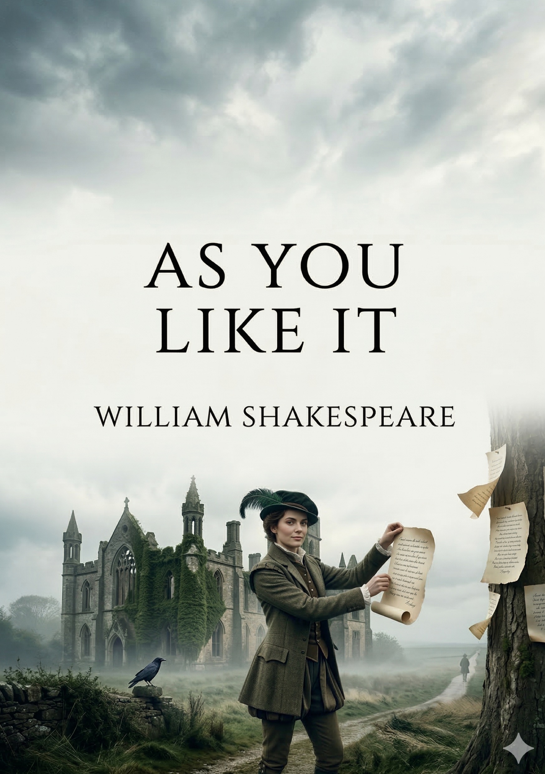 In a French duchy, the old Duke has been usurped by his younger brother, Frederick. A young man named Orlando is mistreated by his elder brother, against their dead father's wishes. Rosalind, the old Duke's daughter, has been allowed to remain in court only because she is the closest friend of Celia, Duke Frederick's daughter. When Rosalind is banished from court, she flees to the Forest of Arden with Celia and Touchstone, the court fool; meanwhile, Orlando also escapes to the forest, fleeing his brother. In the Forest of Arden, the old Duke holds court with exiled supporters, including the melancholy Jaques. There, Rosalind disguises herself as Ganymede and offers advice to a group of would-be lovers: Orlando, who has taken to posting love poems dedicated to Rosalind on trees, and Silvius and Phebe, two young shepherds.Shakespeare is thought to have written As You Like It around 1599; while stylistic analysis has not conclusively established its place in the canon, it was certainly completed by August 1600 and was published in the First Folio in 1623. There are no certain dates of performance until the 17th century, but it may have been performed in 1599 or 1603. The play includes a number of Shakespeare's most famous speeches, including Jaques' monologue, "All the world's a stage."