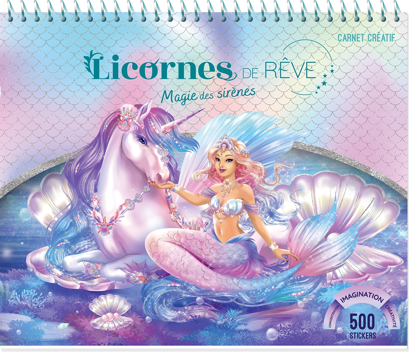 Pour tous les fans de Licornes et de Sirènes ! Un grand carnet créatif avec plus de 500 autocollants, des pages de dessins, des coloriages, des pochoirs, des planches de motifs, des jeux et des modèles pour s’inspirer.L’enfant part à la découverte des mondes magiques des licornes et des sirènes, les habille de somptueux bijoux, et crée des décors merveilleux. Une activité idéale pour les enfants dès 5 ans, pour développer leur imagination, leur concentration, leur créativité et leur motricité en toute autonomie ! Contenu détaillé : plus de 580 stickers ; 5 modèles pour s’inspirer ; 25 licornes à dessiner ; 15 pochoirs ; 4 planches de motifs ; des mandalas, DIY, jeux