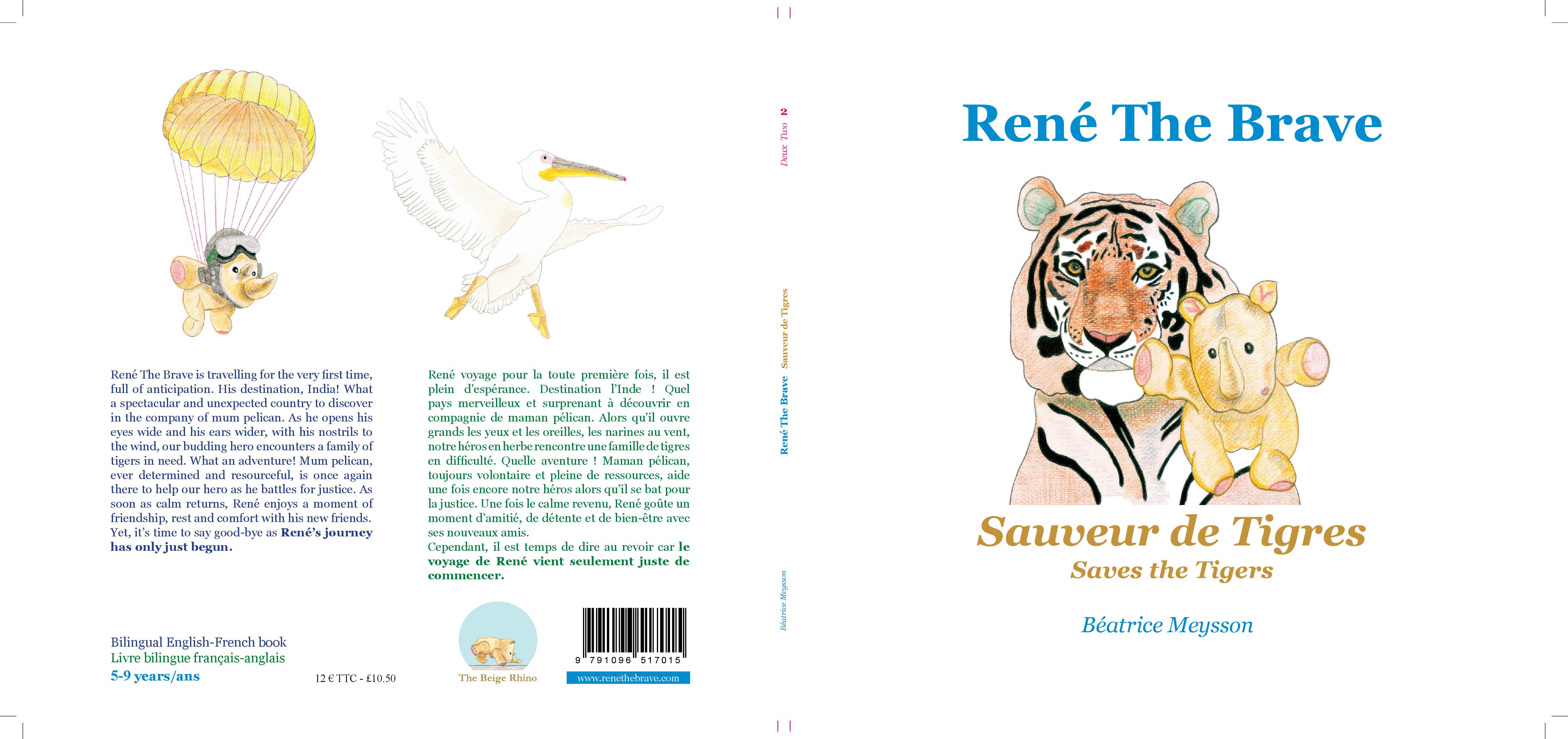 Il s’agit de la suite des aventures de René The Brave, un petit rhinocéros courageux et altruiste. Destination l’Inde où notre héros commence un voyage initiatique. Il rencontre une famille de tigres en difficulté, se bat pour les aider et goûte enfin un moment d’amitié, de détente et de bien-être avec ses nouveaux amis, une fois le calme revenu.Il s'agit d'un livre bilingue français-anglais pour enfants de 5 à 9 ans.