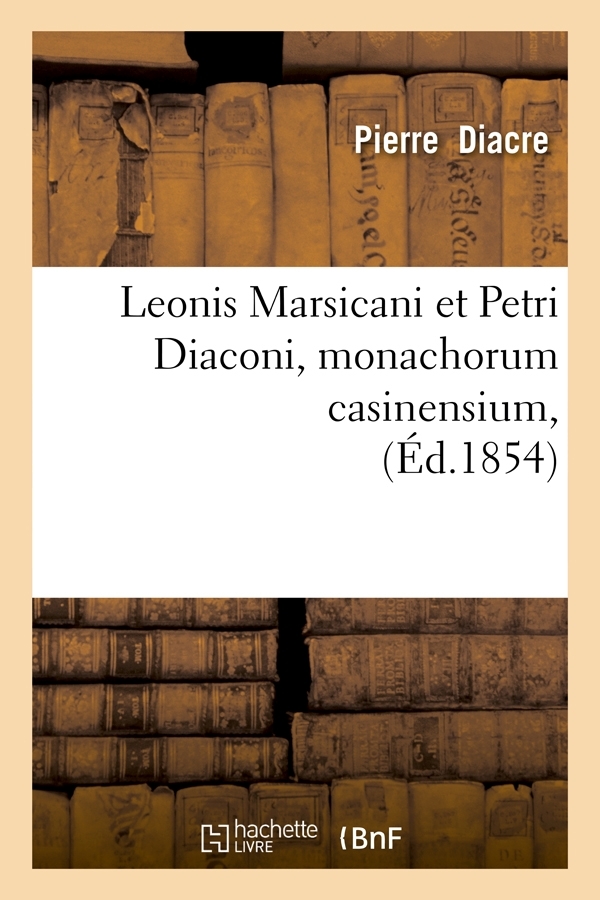 Leonis Marsicani et Petri Diaconi, monachorum casinensium, Chronicon monasterii casinensis et opuscula. Accedunt Rodulfi, abbatis S. Trudonis, Gesta abbatum trudonensium. necnon Falconis Beneventani, Landulphi junioris chronica... accurante J.-P. Migne,... Date de l'édition originale : 1854[Chronica monasterii Casinensis (latin). 1854]Comprend : Epistolae et diplomata. Le présent ouvrage s'inscrit dans une politique de conservation patrimoniale des ouvrages de la littérature Française mise en place avec la BNF. HACHETTE LIVRE et la BNF proposent ainsi un catalogue de titres indisponibles, la BNF ayant numérisé ces oeuvres et HACHETTE LIVRE les imprimant à la demande. Certains de ces ouvrages reflètent des courants de pensée caractéristiques de leur époque, mais qui seraient aujourd'hui jugés condamnables. Ils n'en appartiennent pas moins à l'histoire des idées en France et sont susceptibles de présenter un intérêt scientifique ou historique. Le sens de notre démarche éditoriale consiste ainsi à permettre l'accès à ces oeuvres sans pour autant que nous en cautionnions en aucune façon le contenu.Pour plus d'informations, rendez-vous sur www.hachettebnf.fr