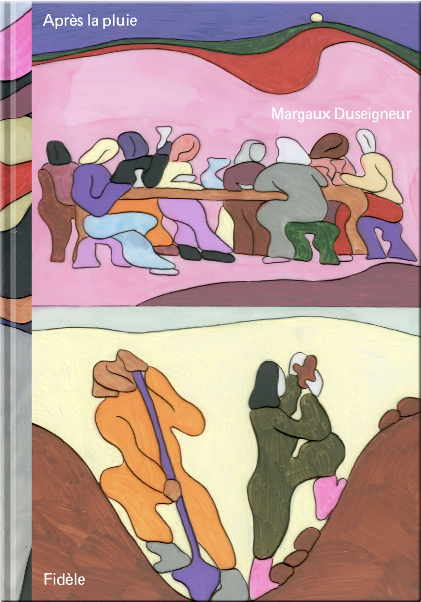 Après la Pluie est une bande dessinée suggérant une certain radicalité visuelle et narrative, installant une utopie d’un monde en reconstruction après la chute de nos sociétés. Ce récit politique, écologique et social interroge nos manières d’habiter la Terre, de nous organiser collectivement et d’inventer de nouvelles formes de solidarité. À travers un récit fragmenté en chapitres, nous suivons des communautés qui réinventent leur quotidien après un bouleversement global, entre carnavals de résistance, architectures de fortune et mémoire des luttes.Les illustrations, peintes sur papier calque, confèrent à l’ouvrage une profondeur et une sensibilité uniques. Les superpositions de couleurs et les transparences créent un jeu d’ombres et de lumières, renforçant la sensation d’un monde en mutation.S’inscrivant pleinement dans l’engagement artistique et politique de Fidèle Éditions, ce projet incarne notre volonté de proposer des récits qui questionnent notre époque tout en suggérant des alternatives, allant chercher du côté d’une certaine sensibilité universelle qui nous lie et nous permet de communiquer librement.Cette première bande dessinée d’un format long marque une étape important de l’artiste qui déploie son langage sur 160 pages, le faisant évoluer vers un lexiquecomplet.