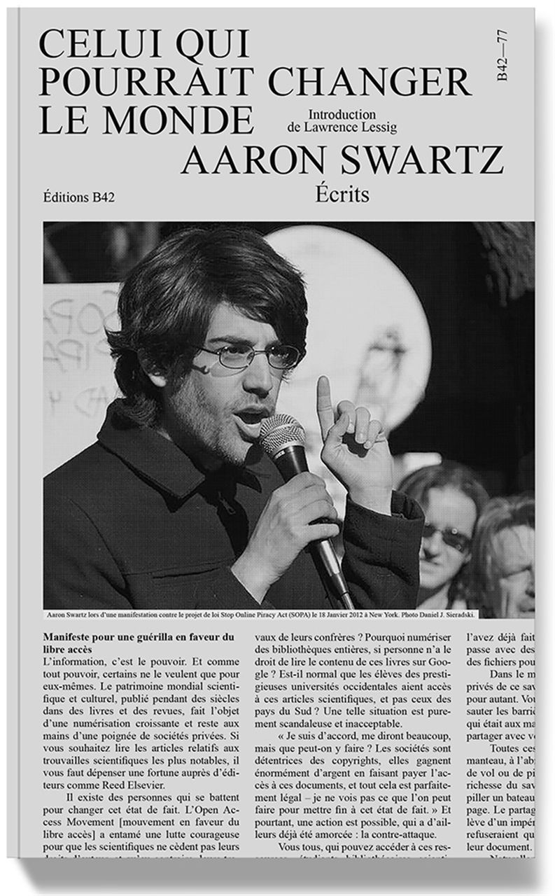 Aaron Swartz (1986-2013) était programmeur informatique, essayiste et hacker-activiste. Convaincu que l’accès à la connaissance constitue le meilleur outil d’émancipation et de justice, il consacra sa vie à la défense de la « culture libre ». Il joua notamment un rôle décisif dans la création de Reddit, des flux RSS, dans le développement des licences Creative Commons ou encore lors des manifestations contre le projet de loi SOPA (Stop Online Piracy Act), qui visait à restreindre les libertés sur Internet. Au fil de ses différents combats, il rédigea une impressionnante quantité d’articles, de textes de conférences et de pamphlets politiques, dont une partie est rassemblée ici. L’adolescent, qui était déjà un libre penseur brillant, laisse progressivement place à l’adulte, toujours plus engagé, se prononçant sur des sujets aussi variés que la politique, l’informatique, la culture ou l’éducation, et annonçant nombre de questions débattues aujourd’hui. Tiraillé entre ses idéaux et les lois relatives à la propriété intellectuelle aux États-Unis, harcelé par le FBI à la suite d’un procès intenté à son encontre, Aaron Swartz a mis fin à ses jours à l’âge de 26 ans. Son ami et mentor, Lawrence Lessig, professeur de droit à Harvard et candidat aux primaires démocrates pour l’élection présidentielle américaine de 2016, signe l’introduction de cet ouvrage.
