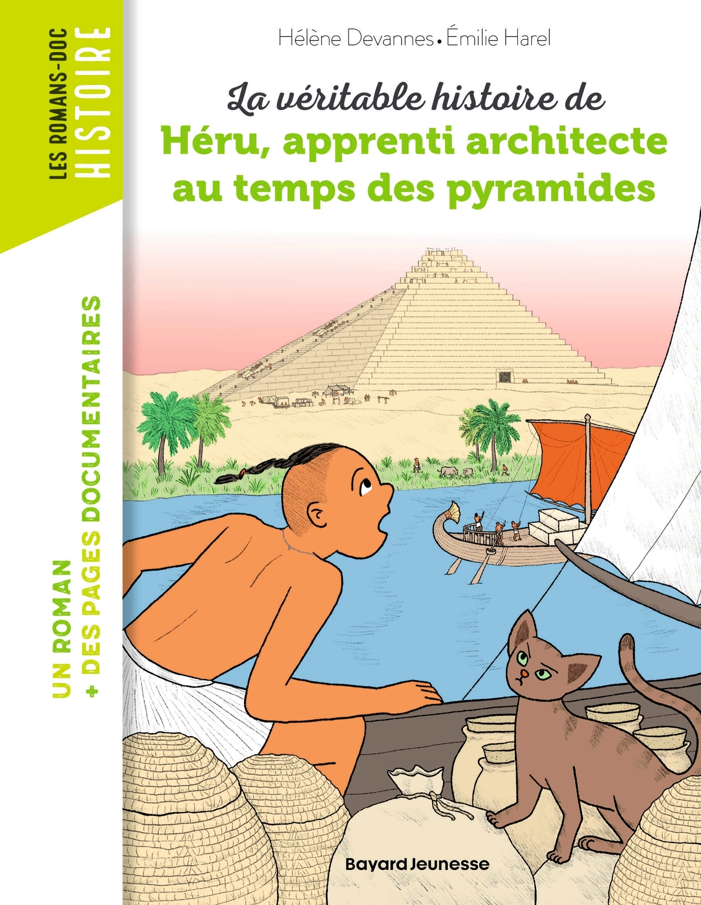 L'histoire du jeune Héru se passe dans l'Égypte ancienne, au temps de la construction de la pyramide du pharaon Khéops.Héru, héros égyptienDu haut de ses 12 ans, Héru doit apprendre les hiéroglyphes pour devenir scribe alors qu'il ne rêve que d'une chose... : être un jour un grand architecte ! Une aventure sur le NilPour sauver son père et le chantier de la pyramide d'un terrible complot, Héru embarque à bord d'un navire sur le Nil. Accompagné de son fidèle chat, le jeune héros fait tour à tour face à une tempête, une attaque de scorpion et un mystérieux enlèvement...Pour découvrir l'ÉgypteLe récit est augmenté de 11 pages documentaires illustrées, d'une carte et de grandes images fléchées pour découvrir la fabuleuse civilisation égyptienne.