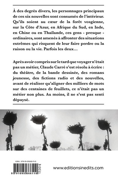 Six nouvelles, six personnages consumés de l'intérieur, quels que soient les paysages qu'ils traversent, de la forêt vosgienne à l'Afrique du Sud, en passant par la Côte d'Azur, l'Inde, la Chine, la Thaïlande... Ordinaires ou presque, ils affrontent des situations qui peuvent leur faire perdre la raison ou la vie, parfois les deux, une menue fissure intérieure pouvant s'élargir en gouffre fatal.